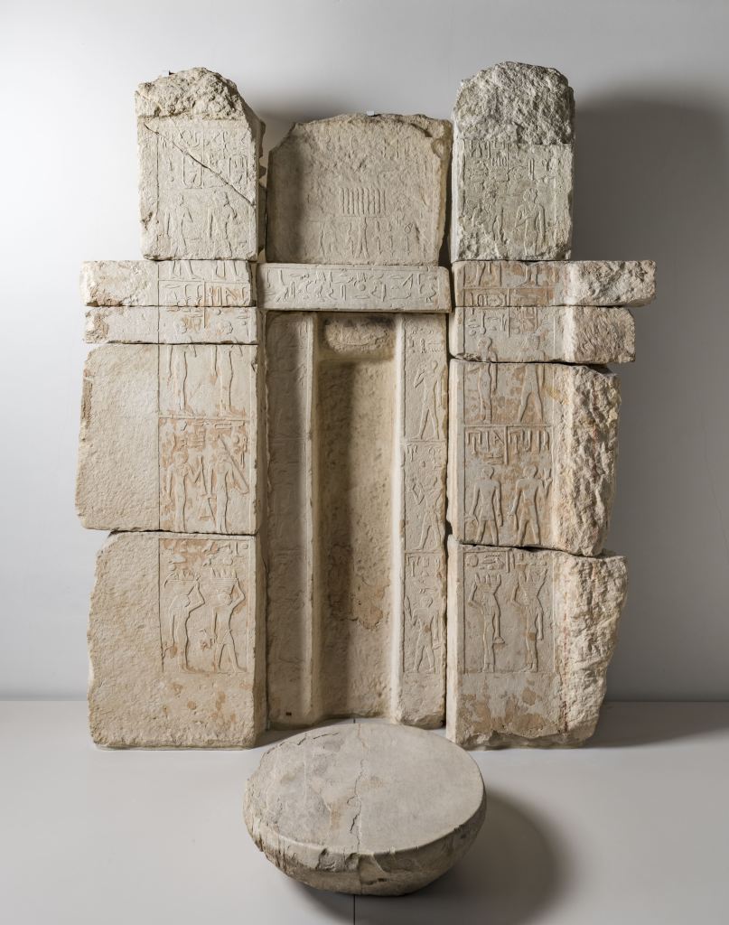 The false door is a ‘point of contact’ between the living and the deceased of the tomb. False doors were built into tomb structures, and can be thought of as a gateway between the world of the living and the dead. However, only the deceased can move into the threshold of the door. They would do this to collect offerings and letters deposited at the door by their family or cult members. These interactions show us that when tomb owners died, they were not thought of as entirely cut off from the living world. Instead, the deceased were very much a part of the living community.